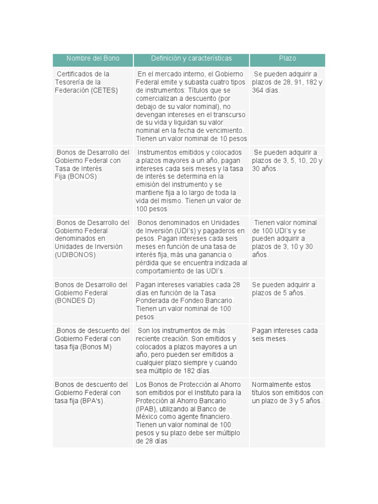Siempre y cuando cuenten con al menos un bono dentro de la canasta de bonos entregables. Los bonos de desarrollo del gobierno federal denominados en unidades de inversión a que se refiere el presente título múltiple se mantendrán depositados en administración en el banco de méxico, quien s. Indicó que el gobierno federal no. Somos el sitio web pionero de información sobre bonos y subsidios que se entregan por medio de varios programas sociales enfocados a combatir la pobreza. Títulos de crédito nominativos y negociables, emitidos por el gobierno federal y colocados a descuento por el banco de méxico a un plazo no menor de un año.